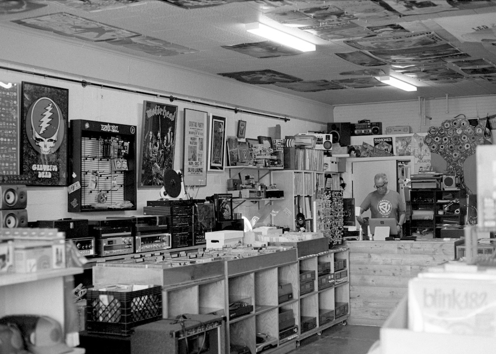 Music mentor, designer, producer and Traffic Records employee Robert Riser works at the store on his days off.