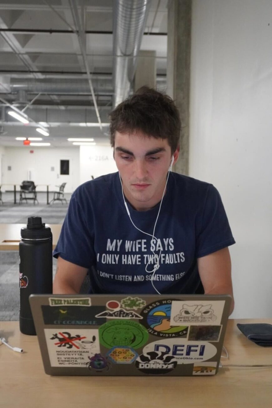 “I try to avoid the library on weekends, but find myself in here most Sunday nights.” – Flynn Hanrahan, political science senior