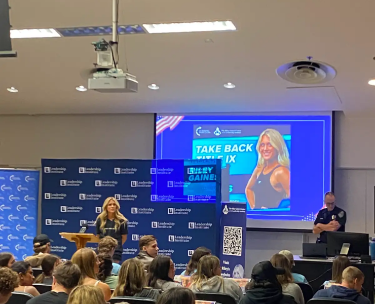 Riley Gaines discusses transgender participation in sports during Cal Poly TPUSA event