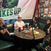 As the pops of paddles hitting wiffle balls echoed across the courts, the sharp aroma of pickles filled the air. The event lived up to its name as pickles were made readily available to attendees, alongside hotdogs with the option of pickle ketchup. Landscape architecture senior and self-proclaimed pickle lover, Owen Fitzgerland, said he came to the event primarily for the briny snacks.