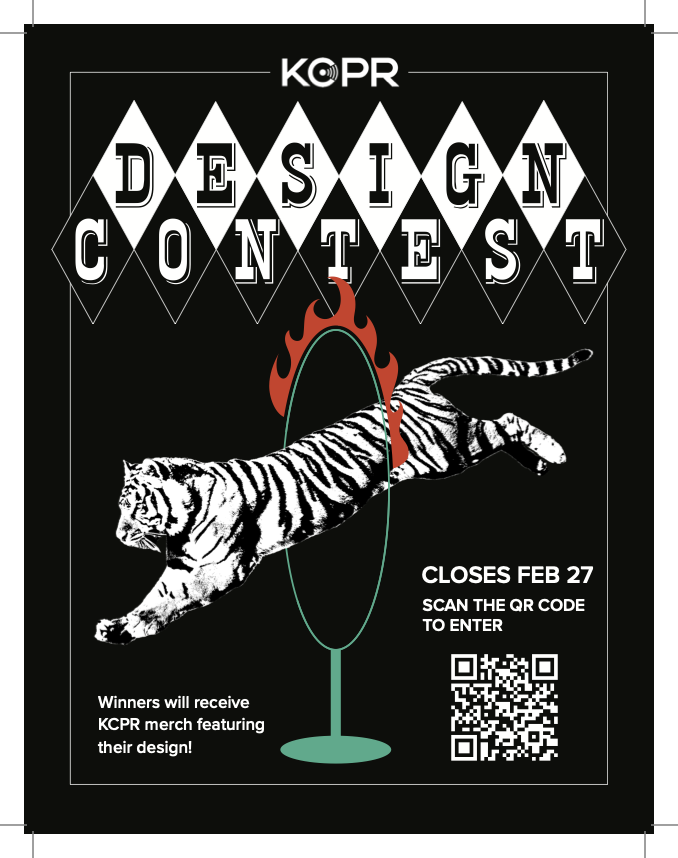 Your creativity, your talents, and your passion matter. As a part of our pledge drive this year, KCPR is holding a design contest. The winning designs will be featured on our 2024 pledge drive merchandise — worn by students, alumni, faculty and the community. Our contest will close February 27, 2026, at 11:59 p.m. Winners will be announced March 15, 2025.