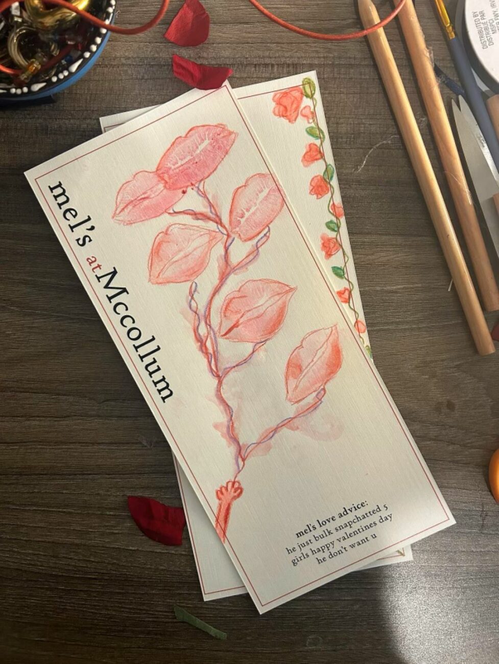 This past Valentine’s Day, Braunstein hosted a dinner for her closest friends with a fixed-course menu she designed herself using InDesign. Integrating her newfound knowledge of typography and composition learned in her graphic communications classes, she decorated each menu with everyone’s personal name, combined with watercolor sketches.