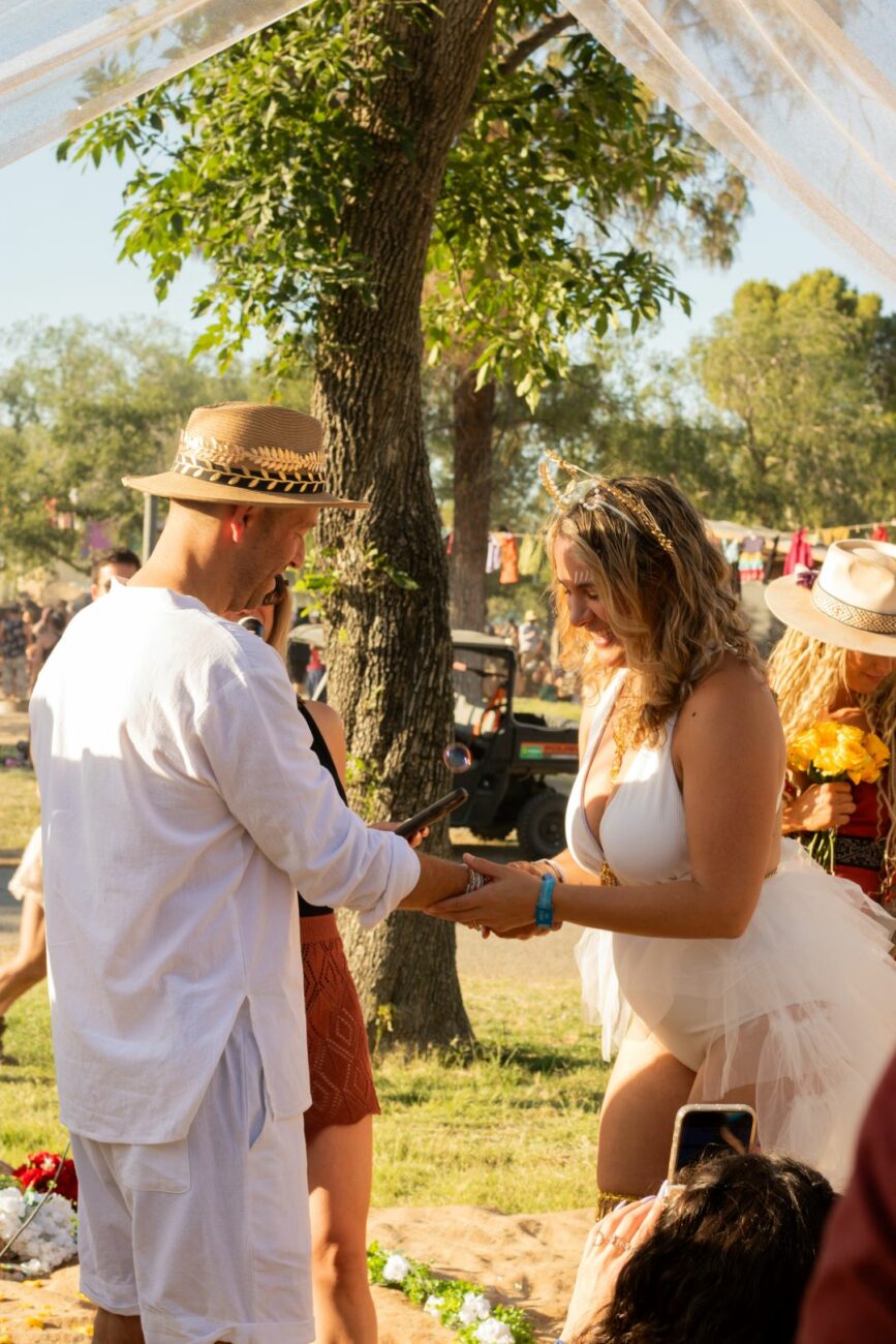 By 4 p.m., a decent-sized crowd of men and women gathered at the Oracle Cauldron tent to hear from Simone Farschi about Feminine Power and Pleasure. Her guided practice involved participants touching various parts of their bodies as she encouraged everyone to let go of any shame they might be holding onto. Many participants stayed after to chat with Farschi about their personal shame and pleasure journeys.