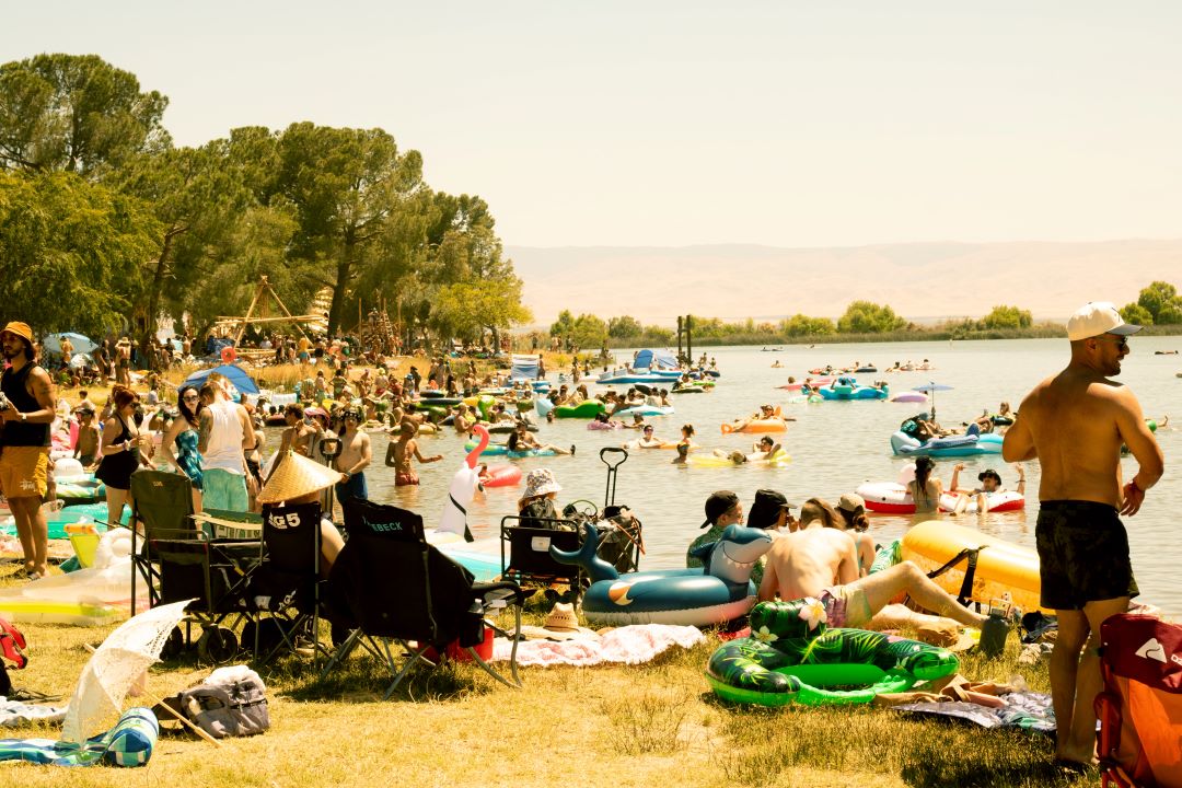 Many attendees opted to take a swim in the Buena Vista Lake in the middle of the day to escape the heat, some even bringing floating devices with beverages before the sun went down.