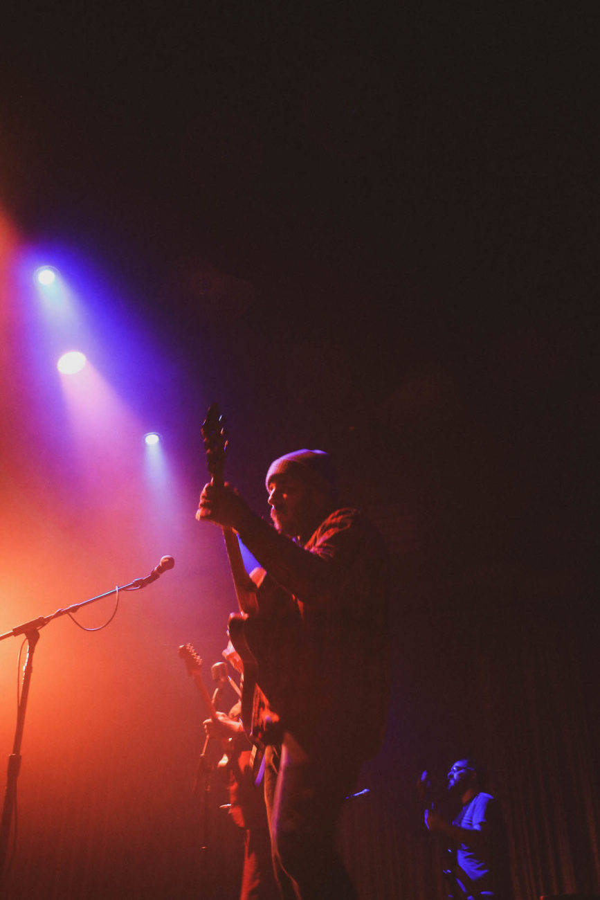Tommy Guerrero and his band came to the stage shortly after. By then, the crowd had grown and began moving closer to the stage. Shouting out to the audience without a microphone, Guerrero said “I know it’s a school night, thanks for coming out.” Guerrero’s band included three other members on drums, bass and percussion, which primarily consisted of conga drums.
