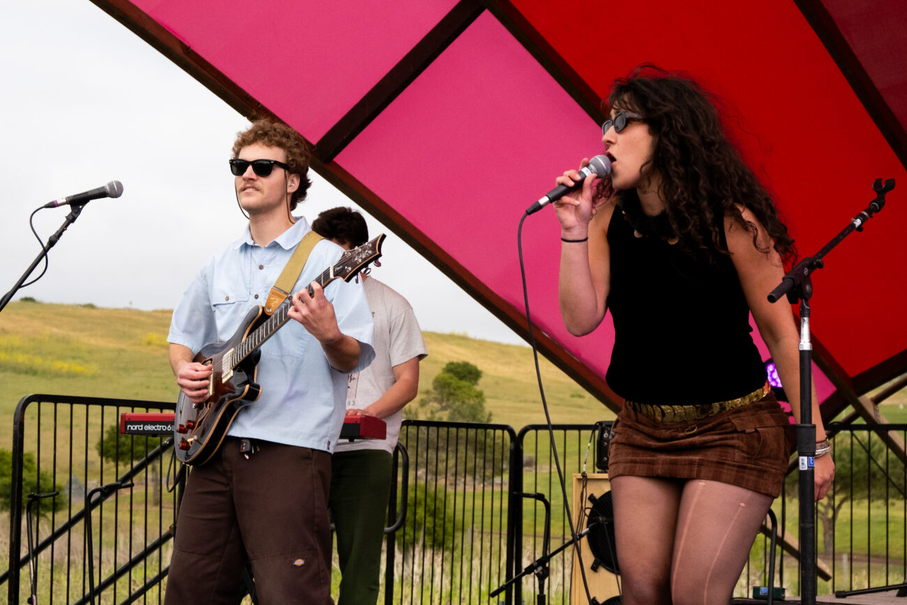 With the sinking sun cast upon the Laguna Lake stage, the otherworldly build-up of Slow Pulp’s “Do You Feel It?” consumed the landscape. Launching their set, the indie rock band kept fans’ momentum flowing, with tracks “Slugs” and “Falling Apart,” accompanied by a beach ball hopping throughout the gentle waves of the crowd.