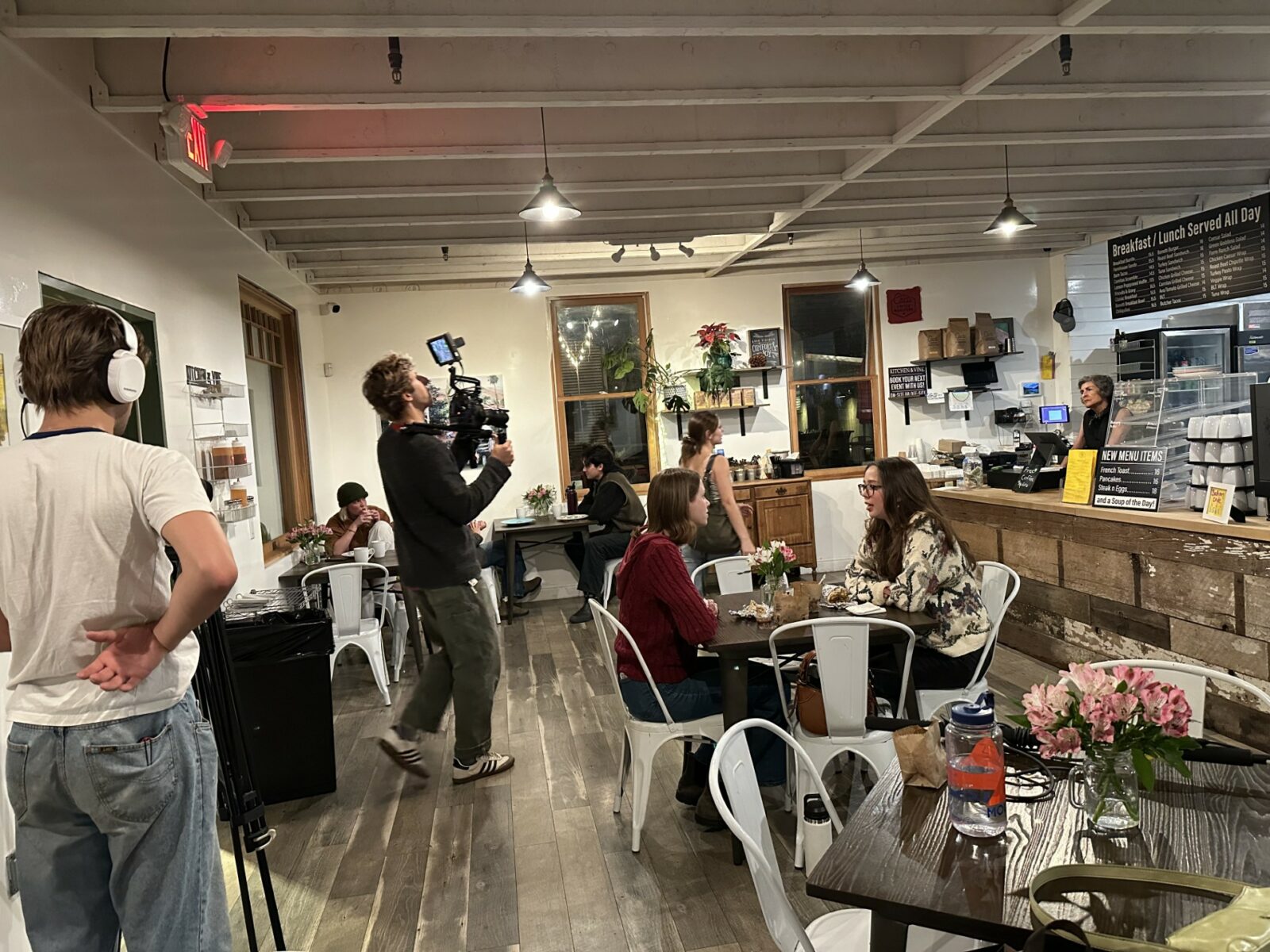During the six-week process, students in Barros’s Cinematic Process course pitch a script to not only their classmates, but those in Warner’s Digital Video course who cover the technical side of film production. They use a ranked voting system to choose which scripts to produce and assign the groups that are going to make each story come to life.