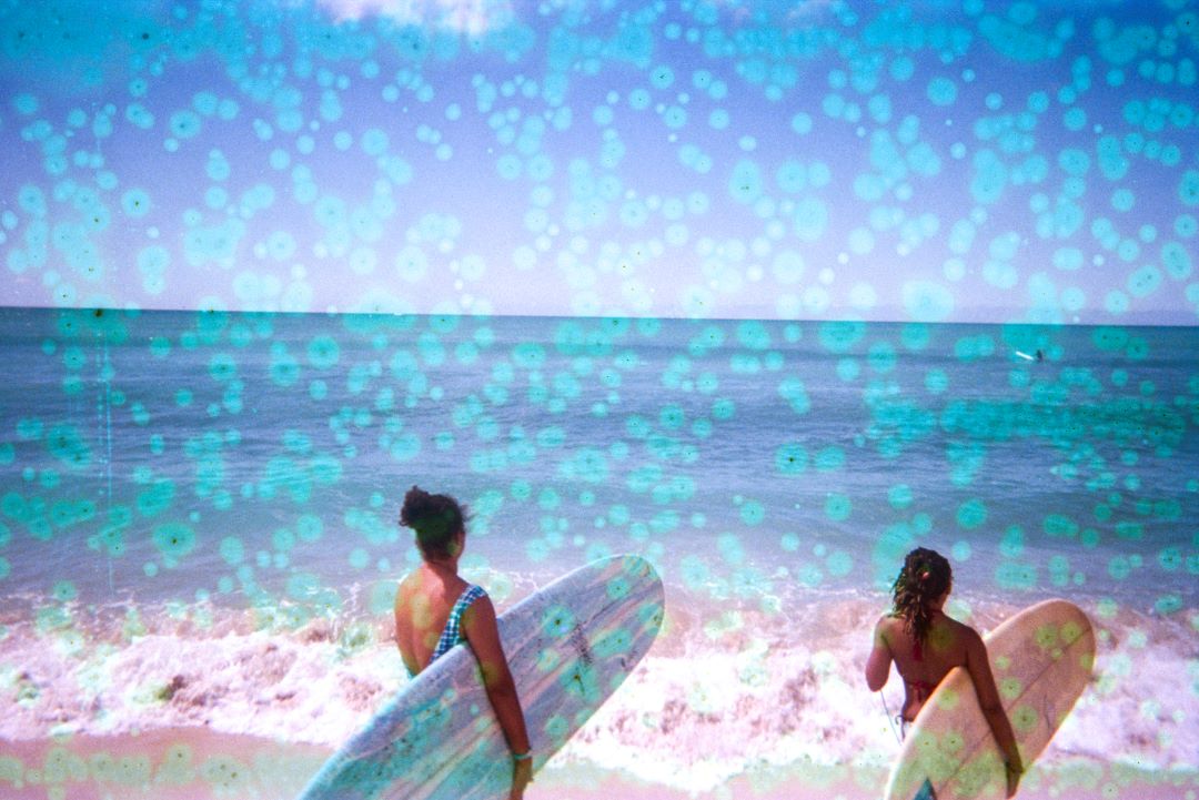 Videography was showcased with Tracey Moffatt’s film “Heaven” which explores surfing through the female gaze, more specifically the ritual of changing into wetsuits after arriving at the beach. The documentary brings up the subjects of voyeurism and sexualization in the context of the surf community, as the questions of private versus public spaces arise through the normality of changing on the beach for surfers.